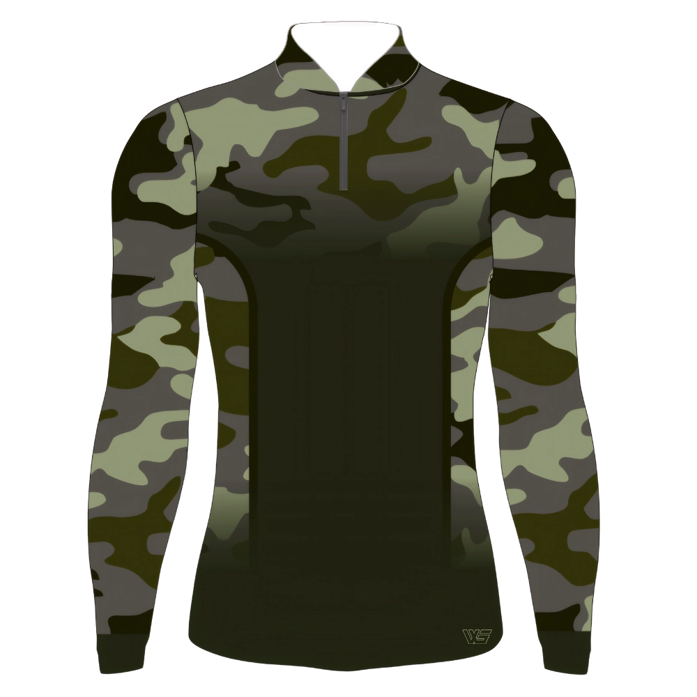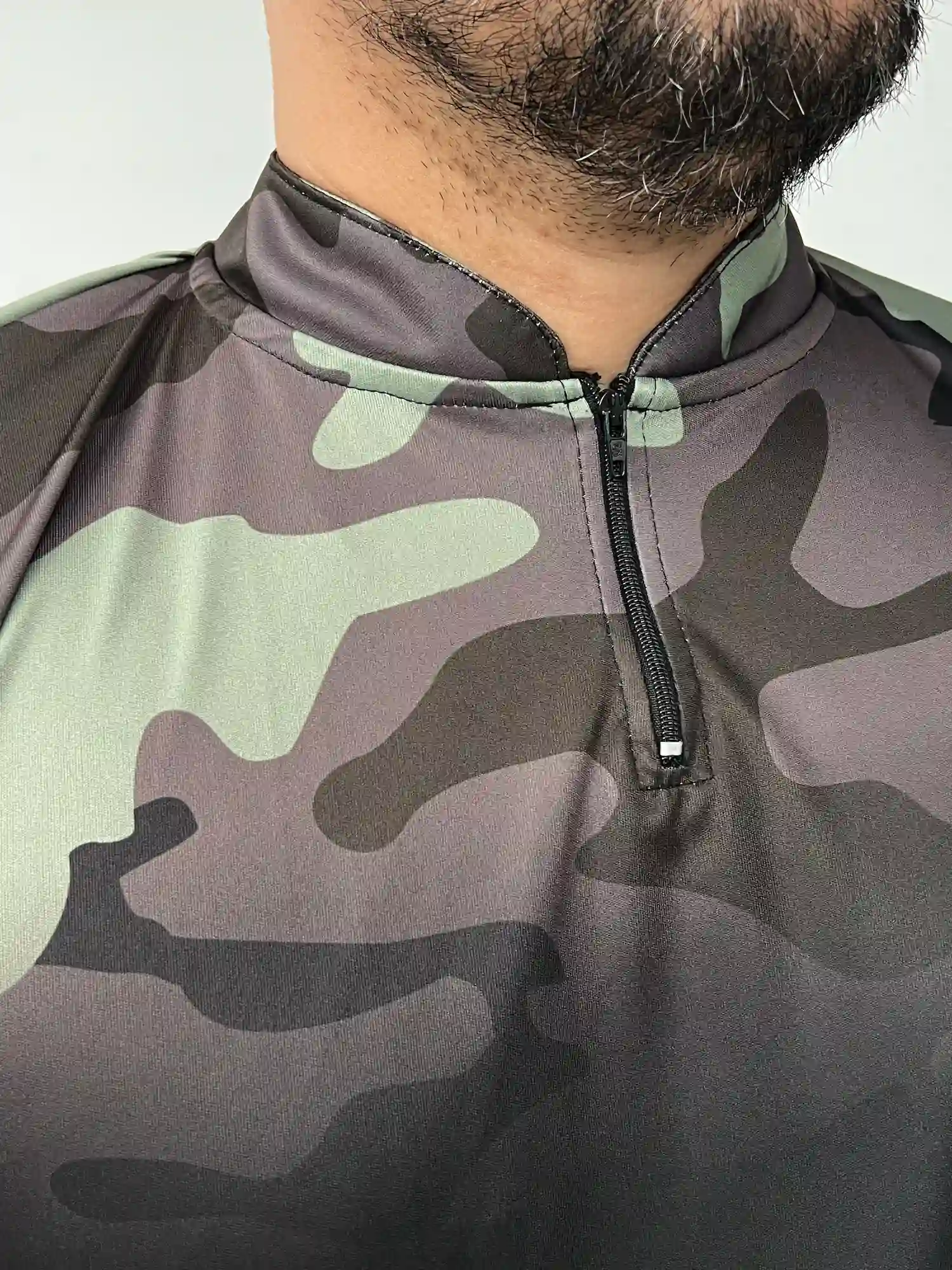 Camisa Camuflada Manga Longa com Zíper Dry Fit com Proteção UV50+